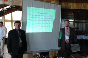 * На фото: Презентация информационной системы брокера "Дедал". Александр Прищепа и Андрей Казанцев возле стенда "Дедал" на Форуме.