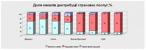 Итак, первопроходцем этой концепции была Франция. В 2000 г. по каналам bancassurance собиралось 35 % всех премий по страхованию жизни; 60 % премий по накопительным страхованию; 7 % по имущественному страхованию и 69 % премий по индивидуальным накоплениям.