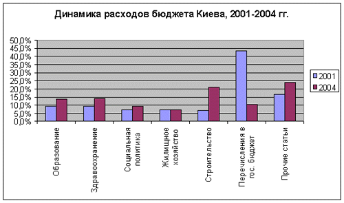 Город приступил к строительству моста, общая стоимость которого может превысить 500-600 млн долл. (50-60% городского бюджета). В 2004 г. в этот проект было вложено более 400 млн гривен (80 млн долл.). Кроме того, город совместно с центральным правительством финансирует строительство кольцевой автодороги. Киев продолжит расширение системы метрополитена - ожидается, что расходы на эти цели составят по меньшей мере 100-150 млн гривен ежегодно. Планируется строительство завода по переработке твердых бытовых отходов стоимостью как минимум 50 млн долл., но источники финансирования этого проекта до сих пор не определены. Центральное правительство софинансирует только строительство метро и автодорог.