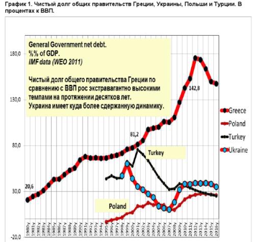 Такое беспокойство объясняется еще и тем, что статистика Греции является уникально тревожной. Очень немного стран имеют нечто похожее. Более того, у нашей Украины, у Польши, у Турции куда более радостные соотношения динамик чистого долга общих правительств и ВВП.