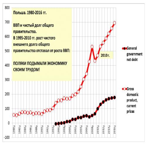 Наша ближайшая и вечная конкурентка – Польша – добилась весьма высоких темпов роста ВВП без обильной кормежки политиков заимствованиями – График 4.