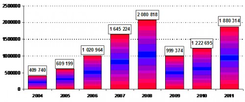 Рис. 3. Объемы продаж новых иномарок за 2004- 2011 гг. в РФ