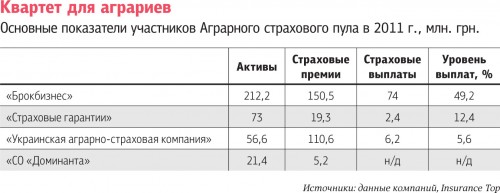 Попадание в пул двух малоизвестных страховщиков вызвало недоумение на рынке. «Эти компании абсолютно новые для нас», — говорит руководитель программы «Развитие агрострахования и агрокредитования в Украине» Международной финансовой корпорации Гари Роше. К примеру, суммарные страховые сборы СК «Страховые гарантии» и «Доминанта» в прошлом году составили меньше 25 млн. грн. Для примера: та же «АСКА» собрала в 2011-м около 420 млн. грн., «Украинская пожарно-страховая компания» — около 450 млн. грн. А такие игроки на рынке добровольного агрострахования, как «Провидна» и «Инго Украина», — в сумме более 1 млрд. грн.