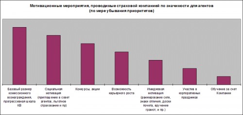 Итоговая таблица по мотивационным мероприятиям, проводимых страховой компанией по значимости для агентов (по мере убывания приоритетов) выглядит следующим образом: