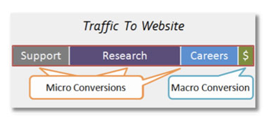 Отслеживая показатели по KPI, которые вы установили для себя в самом начале, вы можете понимать, в правильном направлении вы двигаетесь или же идете по неверному пути. Но следует помнить, что сосредотачиваясь на отслеживании первостепенных для вас конверсий, вроде покупки, регистрации или скачивания, вы можете упускать из виду довольно большой массив людей, которые приходят на ваш сайт с какими-то другими целями. Например, конверсию по покупкам в 3-4% вы можете считать очень маленькой. Но есть и такие посетители, которые заходят на ваш сайт в поисках работы, информации, ради возврата товара или технической поддержки... Их не интересует покупка вашего продукта, это совершенно другая категория посетителей.