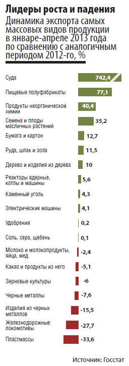 В прошлом году транспортное машиностроение понемногу начало восстанавливаться вместе со всем сектором: основные потребители не могли тянуть с закупками транспортных средств, остановившимися еще в 2009-м. В итоге в 2012 году доля машиностроения в общей экспортной выручке страны составила 19% против 17% по результатам 2011-го. При этом экспорт транспортных средств, принесший в 2012 году около $6 млрд., обеспечил почти половину всех внешних продаж машиностроителей, составивших $13 млрд. Самый бурный рост был зафиксирован в судостроении: + 842% за январь-апрель 2013-го.