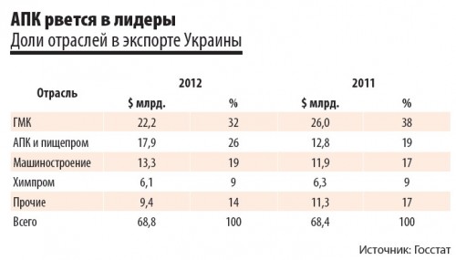 Роль агропромышленного комплекса и пищепрома во внешнеторговом балансе Украины растет. Их доля еще не сравнялась с долей горно-металлургического комплекса, но разрыв стремительно сокращается. Причем, в отличие от ГМК, где в структуре экспорта становится все больше продуктов с низкой добавленной стоимостью, украинский пищепром, к примеру, постепенно переориентируется на производство готовых продуктов.