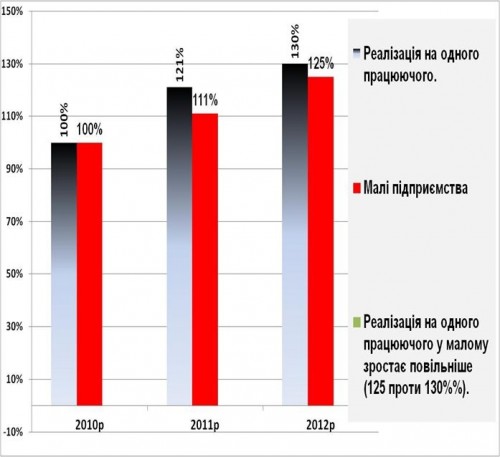 Арифметика показывает, что реализация на одного работающего (см. след График «реалізація на одного працюючого») во всем бизнесе в 2012 г. составила 130% к 2010 г. Неплохо!