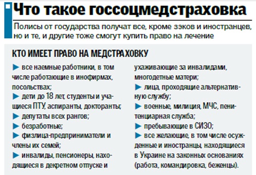 Уже с 2017 года в Украине может появиться обязательная страховая медицина, о которой мы так давно говорим. Это предусматривает законопроект Минздрава «Об общеобязательном государственном социальном медицинском страховании». Сейчас документ проходит публичное обсуждение (основные положения законопроекта — в инфографике). Согласно документу, работодатели будут страховать сотрудников, отчисляя необходимую сумму ежемесячно из зарплаты. Инвалидов, детей и пенсионеров застрахуют за бюджетные средства.