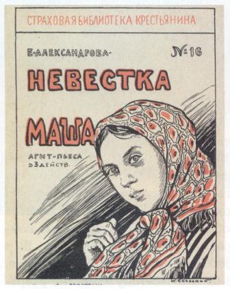 Следующее произведение «Невестка Маша» (автор Е. Александрова) сделано значительно грубее, однако общая схема та же самая: крестьянский быт, семейные дрязги, положительный герой страхуется, отрицательный — виновник пожара. Рассчитана, видимо, на женщин, поскольку временами откровенно напоминает мыльную оперу. В частности, бесправную невестку свекровь-мракобеска несправедливо обвиняет в любовном романе с заезжим страховым агентом, а на самом деле она мужу не изменяла, а ходила побеседовать с агентом о страховании и заплатить взнос. Но принципиальное отличие от предыдущей пьесы в том и заключается, что на сцене впервые появляется страховой продавец — агент. Акт неудавшейся «продажи» страхования расписан буквально шаг за шагом, и простой зритель видит, сколь несостоятельны его обычные отговорки, а неопытный агент учится вести разговор, отвечать на возражения клиента. Неграмотная свекровь, заявив, что «налог от Бога не убережет», выставляет агента вон. Затем сама же грубой неосторожностью вызывает страховой случай, после которого погорельцы сначала впадают в отчаяние, а потом облегченно вздыхают, узнав, что все-таки застрахованы предусмотрительной невесткой.