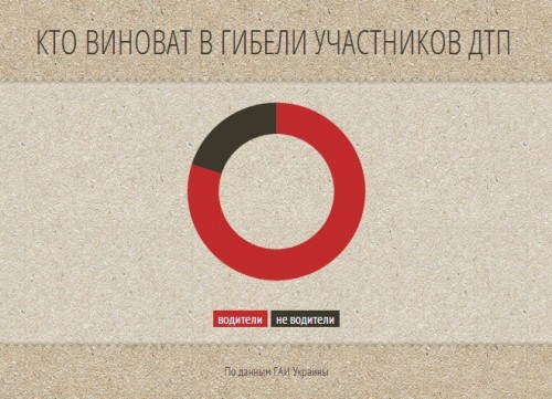 Данные по числу смертей неоднозначны. Один отчёт ГАИ говорит, что в 2013 году на дорогах Украины погибло «всего» 4 824 человека и это аж на 6% меньше, чем в 2012 году. Однако если руководствоваться статистикой ДТП по причинам совершения, то картина выглядит не столь радостно — погибло аж 5 250 человек. Куда, простите, пропали почти 400 погибших, выяснить нам не удалось. Будем верить большей цифре и говорить только о ДТП с пострадавшими, коих в стране случилось 33 038 (18% от всех зафиксированных ДТП).