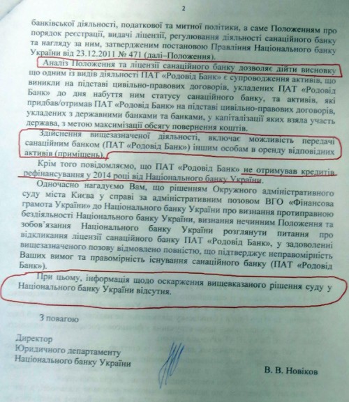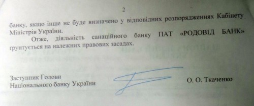 Вот еще интересный момент из ответа НБУ. Регулятор не может вмешиваться в деятельность "Родовида", потому что его собственник - "держава в особі Кабінету міністрів ". То есть у нас появился банк, которым распоряжается Кабмин. У нас появились две банковские системы: одна Нацбанка, другая Кабмина.