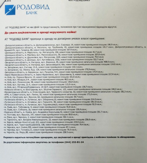 Мы также спрашивали, почему "Родовид" начал сдавать свои отделения в аренду, вот объявления с его сайта. Закон о банках не разрешает это делать.