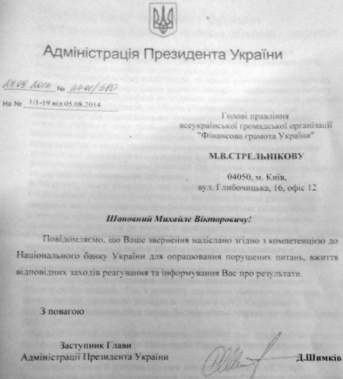 Мы как общественная организация обращались в Администрацию президента с просьбой решить вопрос "Родовода". В сентябре из АП в Нацбанк пришла бумага с просьбой разобраться. До сих пор этой бумагой в НБУ еще никто не занимался.