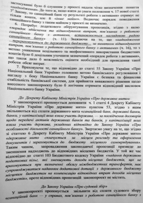 Заключение комитета свидетельствовало, что законопроект надо дорабатывать. Вывод главного управления был разгромный. Там шла речь о нарушении статьи 41 Конституции, о том, что Нацбанк не дал своего заключения. Редко увидишь заключение на четырех листах - и отрицательное. С тех пор ничего не менялось.