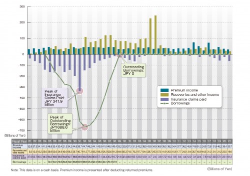 В первой половине 1990-х годов заимствования правительства составили около 700 миллиардов иен (см. рис.) из-за долгового кризиса в Латинской Америке, распада Советского Союза, а также кризиса на Ближнем Востоке и в Персидском заливе. Однако они стабильно возвращались, и непогашенные займы возникли даже в конце 1999 финансового года.