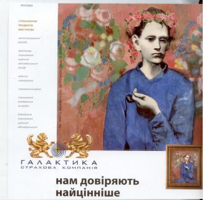 Вот только один пример такой рекламы на обороте титульного листа очень популярного журнала. На рекламной площади в целую страницу можно прочитать слоганы компании "Нам довіряють найцінніше" и "Ваша довіра - наш найбільший скарб". В тексте рекламы мы читаем, что компания имеет большой опыт страхования предметов современного искусства и антиквариата. Вместе с тем, компания не попадает в первую сотню страховщиков по страхованию имущества от огневых рисков и рисков стихийных бедствий. Где же они набрались такого опыта страхования уникальных произведений искусства и культурного наследства при таких объемах страхования имущества?