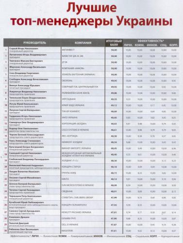 Полную таблицу первых 100 топ-менеджеров Украины смотрите ниже.