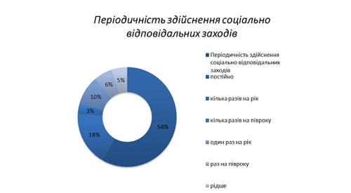 З того часу, як корпоративна соціальна відповідальність бізнесу з’явилася в Україні, змінилося ставлення та періодичність проведення таких заходів. (рис.2) Проаналізувавши дані, стверджуємо що більше половини компаній здійснюють дані заходи постійно.