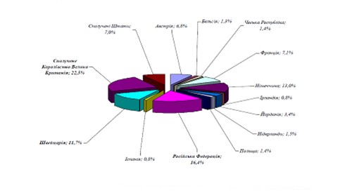 Зокрема, до 2012 року частка премій, яка була сплачена за кордон найбільше надходила до Великобританії – 22,5%, Російської Федерації – 16,4% та Швейцарії – 11,7%.