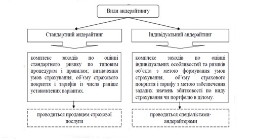 Андерайтинг ? це процедура по ухваленню, або неприйняттю на страхування ризиків за договором страхування зі встановленням (узгодженням) тарифу, франшизі інших умов договору. [16]