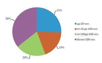 Рис. 3. Структура вакансий для руководителей филиала страховой компании по размеру компаний-работодателей (по количеству сотрудников)