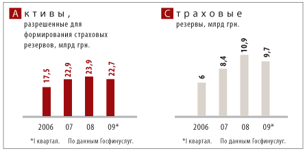 Пока же ситуация на страховом рынке остается малоприятной. По состоянию на 31 марта 2009 г. активы страховщиков, которыми могут быть представлены страховые резервы, на 44,8% (10,2 млрд грн.) были представлены ценными бумагами. При этом 40% ЦБ приходилось на акции предприятий (зачастую отнюдь не первого уровня биржевого листинга), 3%, или 683,7 млн грн., — на корпоративные облигации. Относительно последних следует отметить, что, по признанию представителей фондового рынка, среди эмитентов данных бумаг уже зафиксировано около 100 дефолтов примерно на 1,9 млрд грн. Не радует и то, что 27,3% (6,2 млрд грн.) активов представлены банковскими вкладами. Дело в том, что, по данным Госфинуслуг, около 1,2 млрд грн. средств страховых компаний оказались замороженными в банках с временной администрацией. И надо отметить, что СК пока не преуспели в возврате своих депозитов из “лежачих” банков.