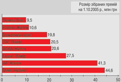 Примечательно, что в нынешнем году среди первой десятки страховщиков жизни самой динамичной оказалась страховая компания "Гарант-Лайф" (акционеры - Укравто, ЗАЗ, финансовая группа "Автоальянс"). Ей удалось в 13,7 раза увеличить сбор страховых премий, что позволило занять 3-е место в рейтинге крупнейших лайфовых компаний.