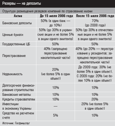 Государственная комиссия по регулированию рынков финансовых услуг планировала ввести эти послабления для компаний по страхованию жизни еще с начала 2006 года. В декабре 2005-го было утверждено соответствующее решение. В Госфинуслуг заверяли страховщиков, что измененные правила без труда пройдут регистрацию в Министерстве юстиции. Однако Минюст не зарегистрировал тогда этот документ из-за несогласования его норм с Антимонопольным комитетом и Государственной комиссией по ценным бумагам и фондовому рынку. Лайфовые компании узнали об этом за 15 дней до конца первого квартала и стали спешно приводить размещение резервов в соответствии с прежними, более жесткими нормативами. Несмотря на обещание регулятора не наказывать страховщиков за формирование резервов по новым правилам, Госфинуслуг провел внезапные проверки и, как утверждают в Лиге страховых организаций Украины (ЛСОУ), оштрафовал несколько компаний.
