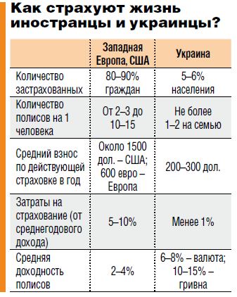 И правда, в Украине страхование жизни все еще находится в зачаточном состоянии – несмотря на наличие не скольких крупных и известных «лайфовых» страховщиков. В том числе – с иностранным капиталом. А ведь в той же Японии свои деньги страховщикам доверяет почти каждый взрослый, в Западной Европе – около 90%, в США – почти 80%. Причем один человек может иметь 2–3 и больше «лайфовых» полисов. В Украине, по оценкам страховщиков, застраховано не более 5–6% работающих.