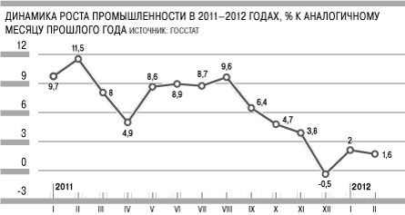 Темпы роста украинской промышленности в феврале замедлились до 1,6% (относительно аналогичного периода 2011 года) после того, как в январе они упали до 2%, сообщили в пятницу в Государственной службе статистики. Как и в январе, большинство отраслей промышленности в минувшем месяце сократили производство, например, углубился спад в нефтепереработке (с 2,2% до 12,4%) и металлургии (с 1,6% до 3,8%). "Многие предприятия испытывали проблемы с ломом и железорудным сырьем, кроме того, холод снизил спрос на металл на европейском рынке",— отмечает аналитик ГК "Инвестиционный Капитал Украины" Александр Мартыненко.