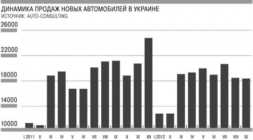 По итогам 9 месяцев нынешнего года рост продаж новых автомобилей в Украине составил 2,6% (до 160,2 тыс.), говорится в отчете информационно-аналитической группы AUTO-Consulting. Это значительно ниже темпов роста в I полугодии — 9,6%, замедление произошло в июле и августе (см. диаграмму). В этом году участники рынка рассчитывали, что рынок продолжит восстанавливаться после кризиса и покажет рост в 15%. В 2009 году продажи упали более чем на 70%, а по итогам 2011 года восстановились только на 36%.