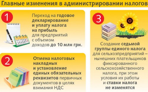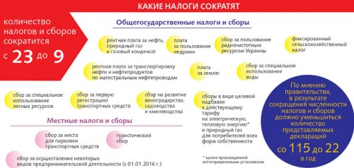 Что же предусматривает данный законопроект? Среди главных новаций министерство задекларировало сокращение девяти налогов и обязательных платежей и отмену налоговых накладных, что позволит уменьшить количество налоговых накладных, ежегодно подаваемых предприятиями в органы ГНС, со 115 до 22, а число налоговых платежей со 184 до 48.