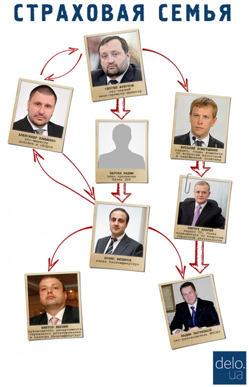 Наряду с этим, "семейные" страховые компании — СК "Украинский Страховой Дом" (собственники Михаил Берлин, жена Виктора Берлина — Наталья Рябченко, а затем структуры, непосредственно связанные с Арбузовым), СК "Доминанта", СК "Страховые Гарантии" (личные страховые компании Арбузова, оформленные через "компании-прокладки"), а также "Юнисон-Гарант" (Клименко), "Амальтея" (Азаров-младший) — вели фактически бесконтрольную деятельность благодаря личному "крышеванию" Берлина и Визирова.