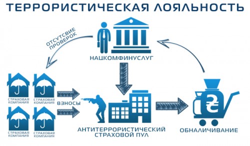 Антитеррористический страховой пул — это еще одно ноу-хау от Комиссии Нацкомфинуслуг, которое почти уже было реализовано. Страховщикам дали неоднозначно понять, что если они хотят "лояльного отношения" к себе, они должны стать членами этого пула и платить регулярные членские взносы. "Фактически, единственная цель создания этого пула — попытка создать систему "взяток в законе", — жалуются страховщики. Деятельность пула должна была начаться с 2014 года. Интересным фактом является то, что управление пулом согласно заключенного договора должна была осуществлять российская компания, осуществляющая управление таким же пулом в России.