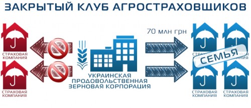 Одним из условий предоставления финансирования фондом является страхование будущего урожая. Нацкомфинуслуг путем ограничения выдачи лицензий на этот вид страхования позволила монополизировать этот рынок исключительно "семейным" компаниям. Аналогичная схема была применена при работе с "Украинской продовольственной зерновой корпорацией". Из всех 400 компаний на рынке (среди которых компании с мировым именем и международным опытом) лицензии были предоставлены только четырем малоизвестным компаниям, а фактически работают с Государственным Аграрным фондом только две компании Арбузова — "Доминанта" и "Страховые гарантии". Объем страхования — почти 70 млн грн в год,