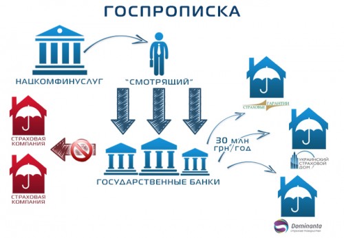 Государственным банкам, находящихся под контролем Арбузова, с помощью Баголы и Берлина были даны "настойчивые рекомендации" принудительно навязывать своим клиентам в первую очередь страховые компании, принадлежащие Арбузову — "Страховые гарантии", "УСД" и "Доминанта". Таким образом, государственные банки были вынуждены отказываться от сотрудничества с надежными рыночными страховыми компаниями и отдавать предпочтение компаниям-"пустышкам", которые систематически не выполняли свои обязательства перед клиентами госбанков.