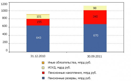 Основным драйвером роста, по мнению «Эксперт РА», стали пенсионные накопления: их объем увеличился на 119%, при этом объем пенсионных резервов с начала года вырос лишь на 4%. Низкий прирост резервов объясняется тем, что развитие сегмента НПО происходит, в основном, за счет взносов по существующим корпоративным программам.