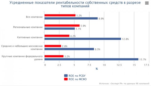 Мнимая прибыль: рентабельность собственных средств крупных страховщиков по МСФО в 5 раз меньше аналогичного показателя по РСБУ (3,2% против 15,7% за 2012 год). При этом по рынку в целом аналогичное соотношение равно 5,2% против 8,9%. Более низкая доходность по МСФО связана с необходимость формировать резервы под обесценение активов, более точно оценивать страховые резервы и отражать прибыль / убытки по аффилированным компаниям при консолидации отчетности. Большой разброс рентабельности у крупных компаний во многом связан как раз с более скромными финансовыми результатами их дочек, еще один фактор – помощь собственников, которая увеличивает финансовый результат по РСБУ, но не отражается в МСФО. Интересно, что у региональных компаний рентабельность собственных средств по РСБУ меньше, чем по МСФО, что можно объяснить их желанием уменьшить налогооблагаемую базу.