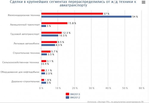 Объем нового бизнеса на рынке лизинга за январь-сентябрь 2013 года составил 940 млрд руб., говорится в исследовании «Рынок лизинга по итогам 9 месяцев 2013 года: удвоение оперлизинга», подготовленном рейтинговым агентством «Эксперт РА». Динамика крупнейших сегментов рынка – ж/д транспорта и авиатехники – при этом отличалась от первых двух кварталов года: если ж/д сегмент отвоевывал утерянные позиции, то объем авиасделок в III квартале был незначительным.