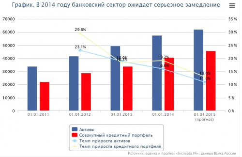 «Эксперт РА»: рост проблемных активов и перебои с ликвидностью не позволят банковскому сектору вырасти более чем на 11% в 2014 году