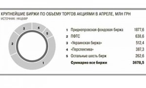 Более значительный объем сделок с акциями в апреле был зафиксирован на ПФТС (638,6 млн грн) и "Приднепровской фондовой бирже" (ПФБ; 1,87 млрд грн; подробнее см. справку). На ПФТС сообщили, что самыми ликвидными акциями в апреле были бумаги "Крымгаза" (объем торгов — 32 млн грн). "У меня нет объяснения. Все как обычно, мы старались делать свою работу оперативно и качественно, без дополнительных усилий, но случилось так, что объем вырос",— ответил директор ПФБ Борис Билый. Благодаря этому скачку ПФБ вышла в лидеры года с отрывом от "Украинской биржи" на более чем 200 млн грн.