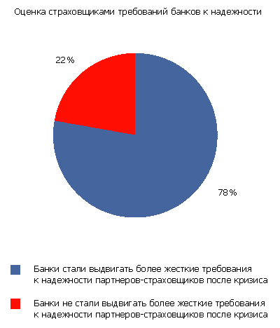 Кризис заставил многие банки пересмотреть принципы сотрудничества со страховыми компаниями. «Надежность и финансовая устойчивость сегодня оказывает существенное влияние на выбор партнера-страховщика, – считает Алексей Янин, руководитель отдела рейтингов страховых компаний. – При этом банки требуют более высокое комиссионное вознаграждение, чем другие посредники (в среднем комиссия банков на 6 процентных пунктов выше, чем у брокеров, в докризисный период разрыв составлял 2 процентных пункта)». Таким образом, банки стремятся осуществить одновременно 2 ключевые задачи: заработать на сотрудничестве со страховщиками и не допустить реализации кредитных и репутационных рисков. Такая стратегии ведет к ухудшающему отбору – финансово устойчивая страховая компания с меньшей вероятностью станет платить завышенные комиссии посредникам.